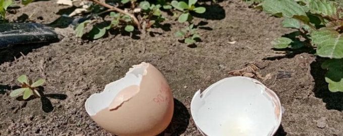 Љуске пилећег јајета, које се састоје од 90% калцијум карбоната, су одлично средство за нежно деоксидацију земљишта без драматичне промене његовог хемијског састава.